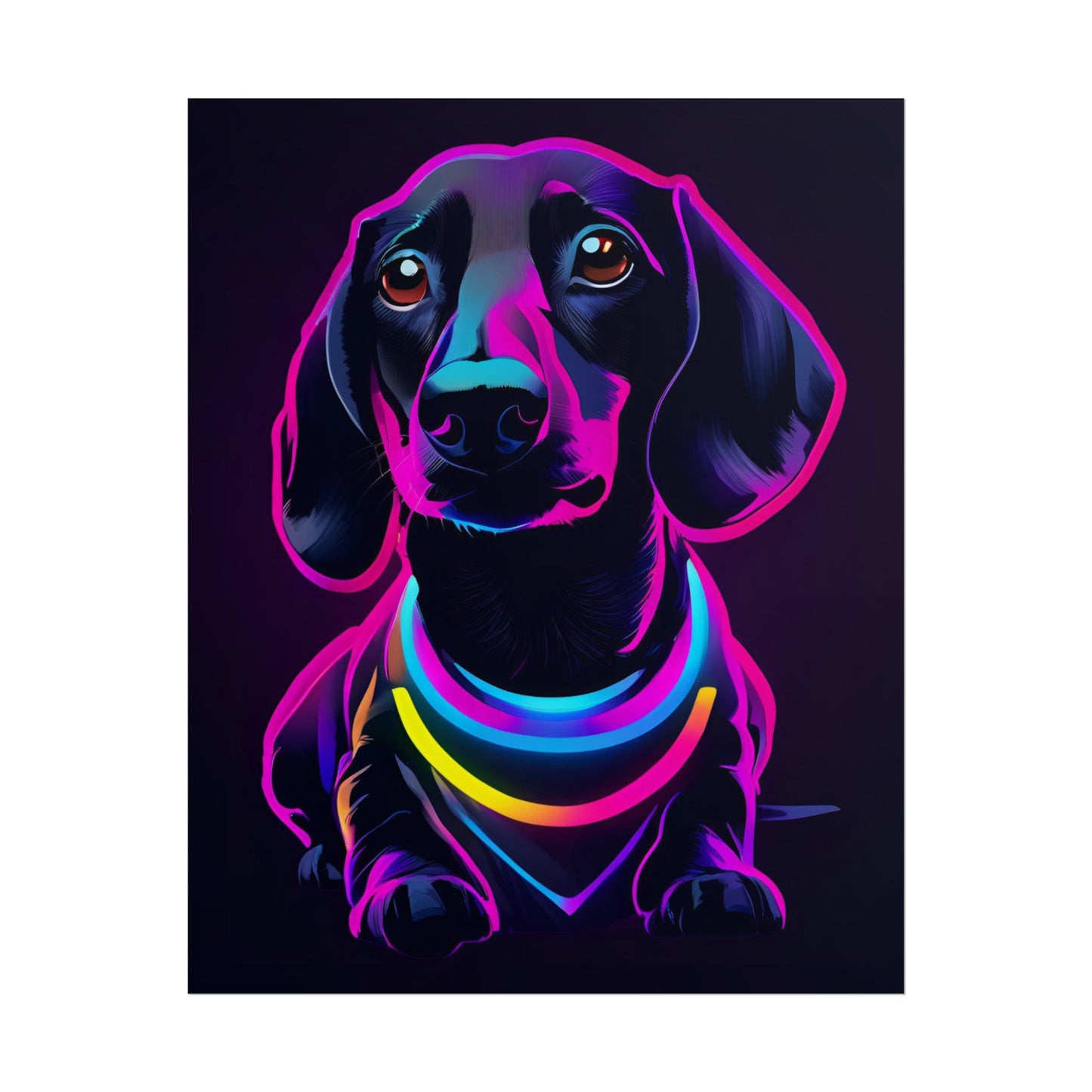Neon Dachshund Poster Dog Wall Art Print, Animal Lover Blacklight Kids Room Decoration